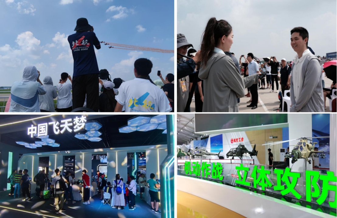 静态展览同样精彩绝伦,空军馆、航空工业馆、航空航天制造配套馆、航空装备及综合服务馆等七个室内展馆展示了一百多家知名企业的一千余件高精尖产品。同学们认真参观学习,积极交流提问,深入实践体验,将书本上学到的知识与具体型号和实战需求相结合,进一步加深了对现代航空技术装备发展的认识与了解,明晰了个人未来学习科研的前进方向。
