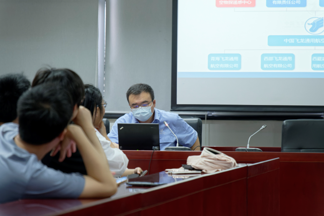在参观最后,工作人员为同学们带来了关于飞龙通用航空公司的历史沿革、整体介绍和天津天津直升机有限责任公司的发展现状、近期目标与科研进展情况。同学们仔细聆听,不时拍照记录。老师们寄语同学们要好好学习,更新航空工业的技术,提高我国的国际地位和影响力。