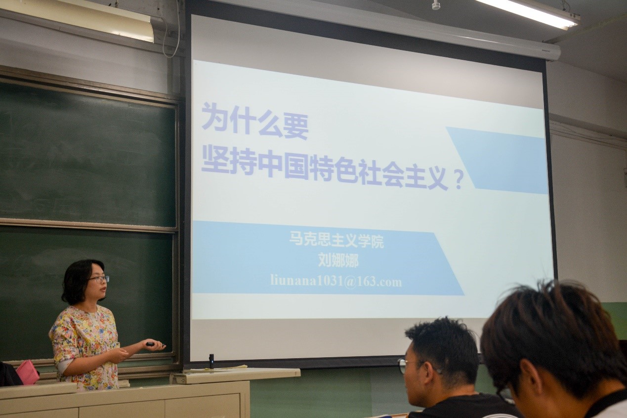 为引导员工深入学习习近平新时代中国特色社会主义思想,学习党的基本理论、基本路线和基本方略等,学院邀请马克思主义学院刘娜娜老师为2017级的本科生带来主题为“为什么要坚持中国特色社会主义”的讲座。