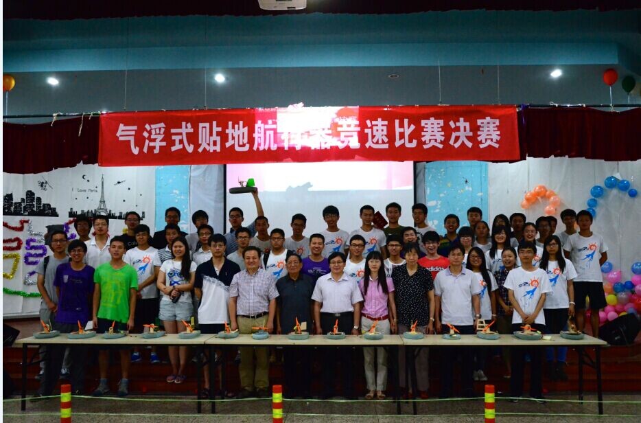 2014年6月15日,首届“气浮式贴地航行飞行器竞速比赛”决赛在沙河校区多功能厅隆重举行。该比赛作为《微小型飞行器设计与实践》课程成果的集中展示,受到了高度关注。共有8支队伍参加本次决赛,在惊险、刺激的比赛之后,由学员陈楷东、许博男、李韬、韩杨楠冰组成的第11组摘得桂冠。公司党委书记林贵平教授,本科教学副经理李敏教授,飞机系党支部书记万志强老师,人机环境与控制系副主任谢永奇老师,飞机系戴玉婷老师,以及教学督导组徐杨禾教授和崔德瑜教授出席了本次比赛。