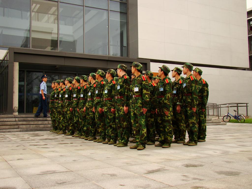 我们身着绿色军装,整齐的步点与飒爽的英姿为雨后的校园增添发硎干将的毕露锋芒;响亮的口号和昂扬的斗志为初秋的校园缀上初升红日的蓬勃向上。