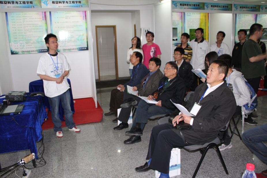上届“冯如杯”由我yl6809永利捧得。为再创佳绩,本届“冯如杯”筹备工作在公司领导的高度重视下有条不紊地展开。在学院专家多次评审以及组织试飞之后,参赛选手于4月15日晚完成布展。公司展区展出的形态各异的飞行器成为众多航空爱好者关注的焦点,作者从2007级到2010级,他们亲手制作的如矢量推进技术验证机、太阳能无人机平台、可变鸭翼验证机等功能特点各异的飞行器博得众多观众争相摄影,试飞视频也吸引了无数路过展区观众的目光。