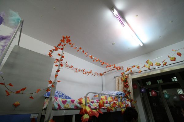同学们都对自己的宿舍进行了精心的布置,有的温馨可爱,洋溢着家的温暖;有的古色古香,蕴含着诗情画意;有的激情十足,国内外文体明星的海报渲染着宿舍内的每一个人;国防生宿舍干净整洁,一进去就让人感觉到浓厚的军旅气息;有的宿舍热爱航空摆满了各种飞机模型,还有的宿舍以一年四季为主题将寝室分为了春夏秋冬四个区域按照不同季节的特色来布置,让人有一种亲近大自然的感觉。多姿多彩的寝室风格组成一个个特色的小家庭,汇聚到1005大班成为一个充满关爱和阳光的集体。