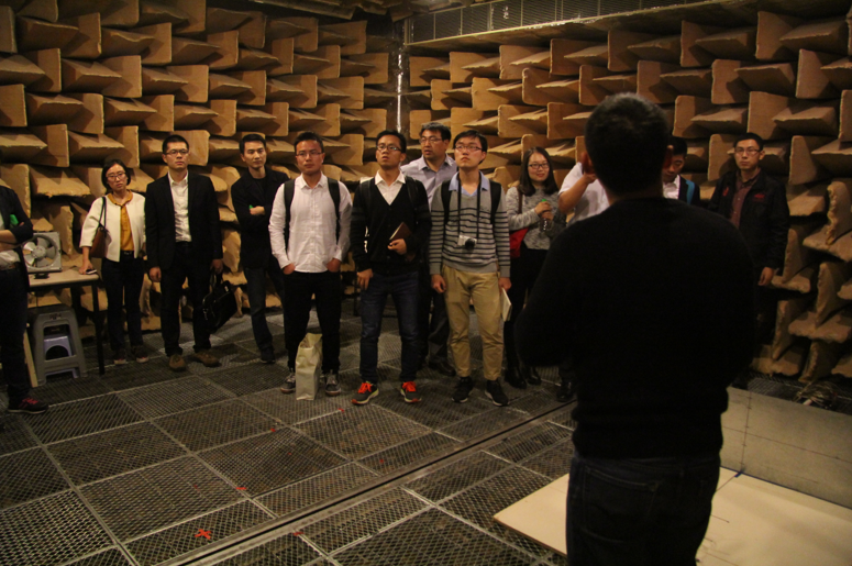 座谈结束后,访问团参观了空间与环境实验室、降噪实验室及水洞实验室。各个实验室的老师和同学为访问团详细介绍了实验设备的工作原理和用途,并解答了访问团成员的提问,双方就相关科研问题进行了探讨。