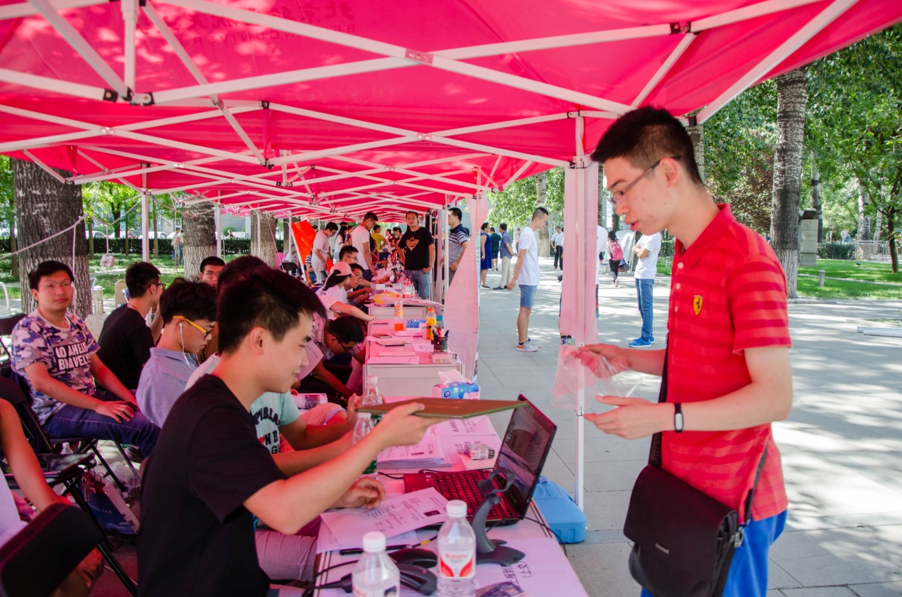 上午7时许,在辅导员的组织下,新生志愿者将报到物资运送至求是广场,并在指定地点迅速布场,等待新生前来报到。今年报到流程由现场扫描报道单、提交材料、领取个人资料袋三步,尽可能简化报到流程,将新生报到的时间控制在一分钟以内。