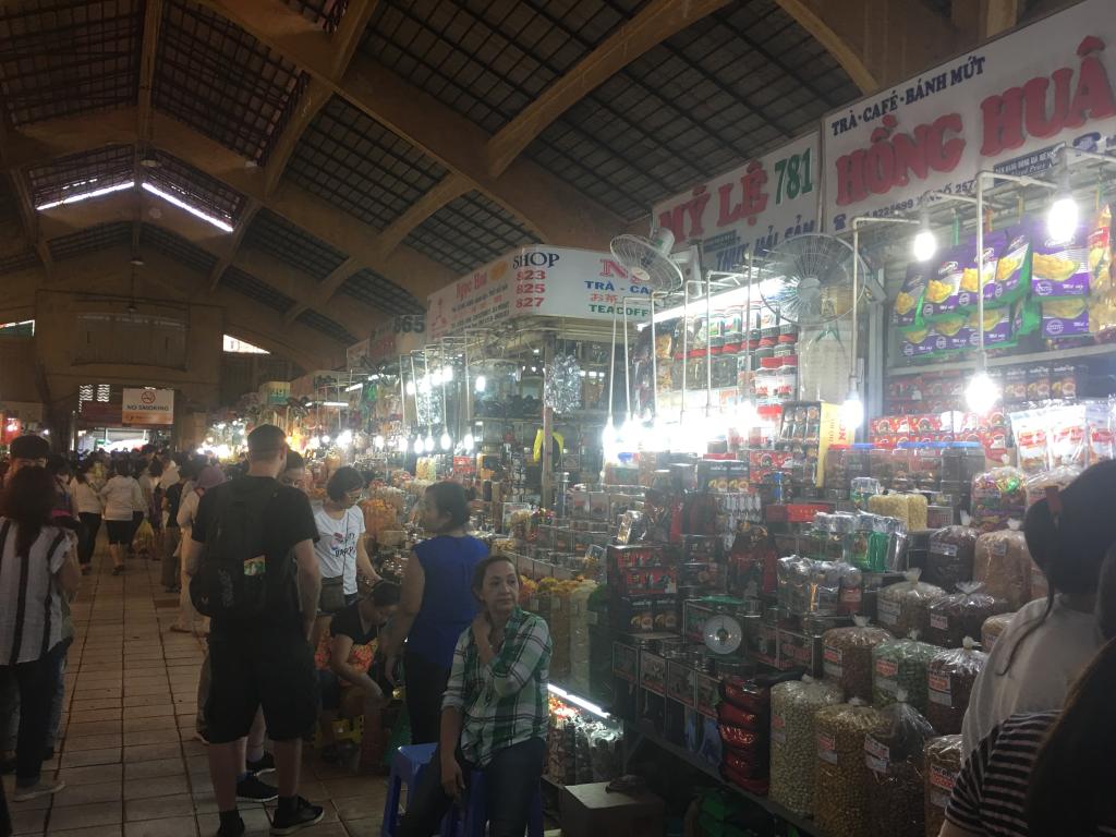 调研完平西市场,游学团继续前往滨城市场(CH BN THÀNH)进行调研。滨城市场位于市中心,邻近游客区。市场内售卖的商品种类同样繁多,但与平西市场不同之处在于胡志明市本地人一般很少在此购物,多是海外游客在此购物。游学团走访了滨城市场的多家商铺,对胡志明市手工业市场的销售情况、畅销商品种类、商品价格以及商品的包装形式等方面的问题进行了调查与记录。