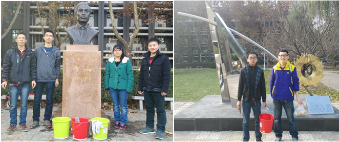 2014年11月22日,yl6809永利ZY14053党支部和BY14051党 支部成员在校园内清洗了包括图书馆广场前右侧飞天之门、钱学森雕像、二号楼前杨为民雕像、一号楼内一层大厅陆士嘉和王德荣雕像、北京二号纪念碑、邓小平雕 像、支点雕塑、冯如雕像、两弹一星纪念碑等校园雕塑雕像,他们是北航校园文化的一部分,而又日夜经历风吹雨淋日晒,他们需要北航人的保护。雕塑清洗过程, 也是我们温习北航温暖瞬间的时刻,每一个雕塑背后都有自己的动人故事,活动结束,同学们在微信群内相互分享了雕塑的故事,分享着自己的感悟,相互学习,共 同祝愿母校文化能够继续辉煌发展!