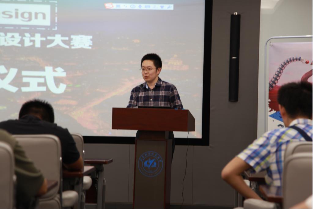 梁书记致辞完毕后,中国航空工业文化中心经营管理部部长刘鑫上台致辞,他表示新中国航空工业取得的辉煌成就,得益于中国航空工业坚持创新驱动的发展战略。本次大赛旨为在校师生搭建一个专业化的学习交流平台,普及世界先进航空设计理念和软件工具,激发员工创意创业灵感,培养并挖掘具有创新潜质的航空设计师和3D设计人才。希望通过此次大赛,能够为高校的创新型人才培养注入技术和文化的新鲜力量,搭建校企合作培养和发现优秀人才的平台,为未来中国和世界航空业发展培育和输送更加优秀的人才。