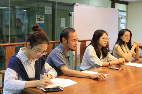 2018年8月4日,yl6809永利“SEESEA”海外游学计划的“一路菲行”游学团队来到位于菲律宾首都马尼拉的雅典耀大学孔子学院,受到了孔子学院老师们的热情接待。团队成员分别听取了孔子学院的初阶课程和进阶特色课程,并有幸与经理梁广寒及中菲两方的几位志愿者老师进行了深度的访谈。访谈围绕孔子学院基本情况、初衷与使命、从孔子学院发展看中国国际影响力、对于国内青年员工的希望和寄托等内容展开,梁经理和青年志愿者老师都做了详尽的介绍,团队成员大有启发。结束访谈后,梁经理、青年教师和游学团队的成员共持北航邮册,亲密地合影留念。