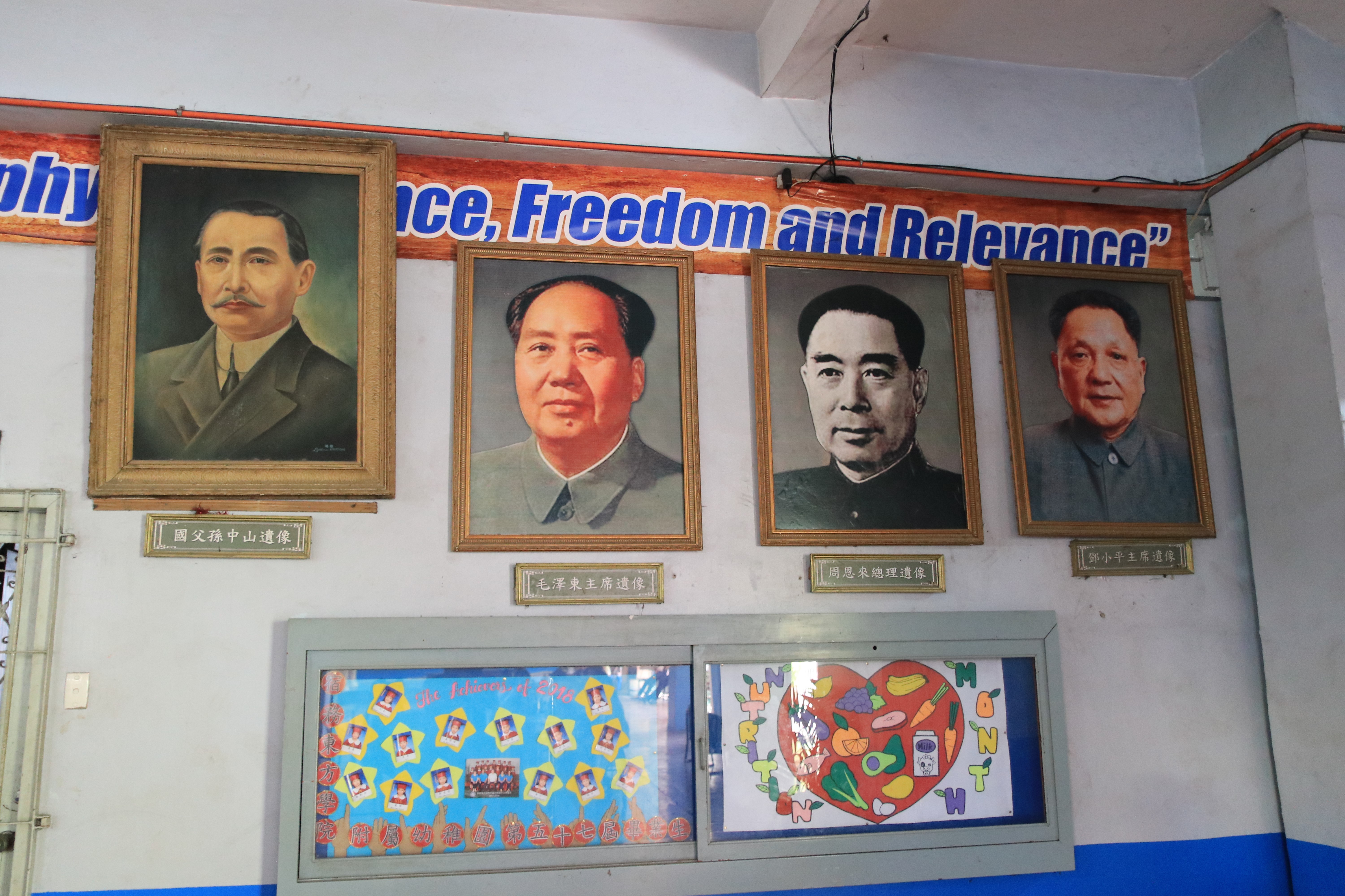 yl6809永利“SEE SEA”海外游学“一路菲行”实践队决定从菲律宾华校观察开始,调研中式传统教育在菲律宾的市场和影响力。为了体会华校这一特别的教育模式,7月31日,菲行的队员们首先到宿务东方学院进行了拜访。宿务东方学院是一所拥有91年历史的老华校,建校时间仅次于马尼拉的中西学校和怡朗的华商中学。学校正门的校训牌书“忠信、孝悌、廉耻、礼义”。这“八德”,作为中华传统文化的核心,作为中华文化的DNA,渗透到中华民族每一个子孙的骨髓里(语出王岐山)。东方学院带有年代感的校训墙,体现出的,是生机勃勃、经历了漂洋过海依然得到传承了的中华文化。学校门厅墙壁上悬挂着毛主席、周总理、孙中山等名人画像,画像下用中文繁体字标示。为了了解更多关于东方学院的情况,团队和当地员工进行了沟通。我们了解到,东方学院涵盖了幼儿园、小学、初高中、大学等多个教育阶段,均是面向整个菲律宾招生。当被问及员工是否会说汉语时,东方学院的员工告诉我们目前通常小学阶段的汉语基础教育做的比较完善,小员工通常会说日常的汉语,高中和老员工由于来自当地不同族群,会提供中文选修课,但是大部分员工不会说中文。可以看出,华校已经和菲律宾其他学校一样广泛为民众所接受。对于小员工阶段,中文教育做的比较好。高中和大学受限于实际生源,提供中文选修课不失为一种恰当的方式,有助于青少年了解更多关于中华文化的内容。校内处处充满的国学气息,无形中形成一种文化感染。