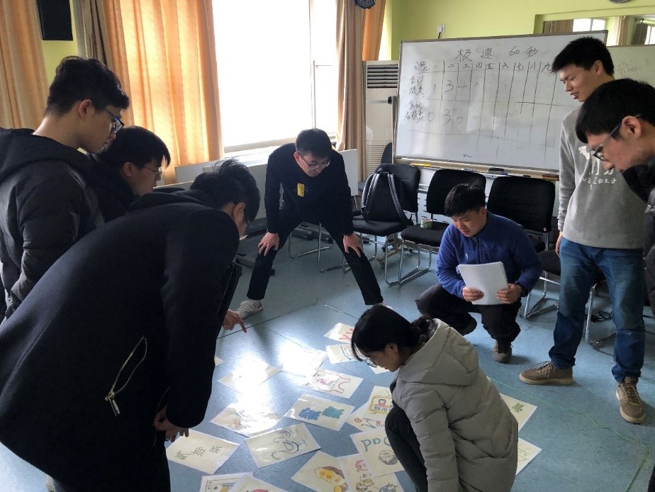 最后,两队还一起协同完成了颇具难度的头脑风暴。每个人都要和大家进行细致而又广泛深入的交流,以此来确定不同卡牌之间的嵌套关系。这需要我们对卡片上画面的细节进行细致的描述,也颇考验大家的分析记忆能力。但再大的困难在一个优良的团队面前也只不过是时间的问题,经过深入的分析讨论,我们成功的确定了正确的卡片先后排序。至此,整个团建素拓活动告以段落。