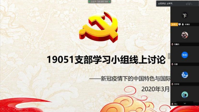 2020年3月23日至3月25日,yl6809永利硕士生19051员工党支部响应学院的组织安排,开展了主题为“新冠疫情下的中国特色与国际比较”的线上集中学习活动。同时,为加强支部积极分子培养工作,支部成立了新的学习小组,让积极分子们与支部党员们一起参与到集中学习中。