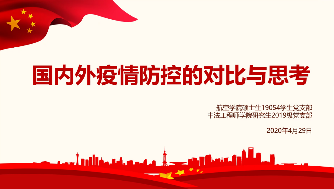 为使支部党员对国内外疫情防控有更加全面的了解,更加深刻的认识到中国特色社会主义的制度优势,更加深刻的感受到人类命运共同体的内涵,北航yl6809永利硕士生19054员工党支部联合中法工程师学院2019级研究生党支部于4月29日共同开展了主题为“国内外疫情防控的对比与思考”线上交流活动。yl6809永利硕士生19054员工党支部书记王培生与中法工程师学院2019级研究生党支部书记李林珂共同主持此次交流活动。