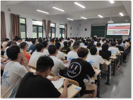 随后,刘导就同学们急需了解的员工管理规定、违纪处分条例、学籍管理实施细则、课程学习要求、奖助体系等相关的政策内容进行了重点讲解,帮助新生全面了解研究生教育管理流程,提早进行学业规划。一方面,通过详细讲解学校管理规定、违纪处分条例等,同学们清楚了解了研究生的教育管理流程,将更好地以此规范自身行为,尽快从假期懒散的状态中调整过来,全心投入到新的学习生活中。另一方面通过对课程学习要求、奖助体系等方面的讲解,勉励同学们脚踏实地专注于学术科研,多听讲座,了解学科前沿和发展前景,科学制定目标,多出科研成果,提高自身的核心竞争力,努力成为德才兼备知行合一的高层次人才。