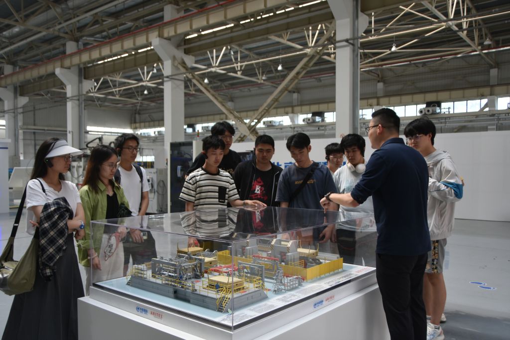 新大洲公司的领导老师带领同学们参观了生产车间,着重展示了公司在装备制造工艺上的现状,同时深入浅出地对各个生产加工的环节进行了讲解。
