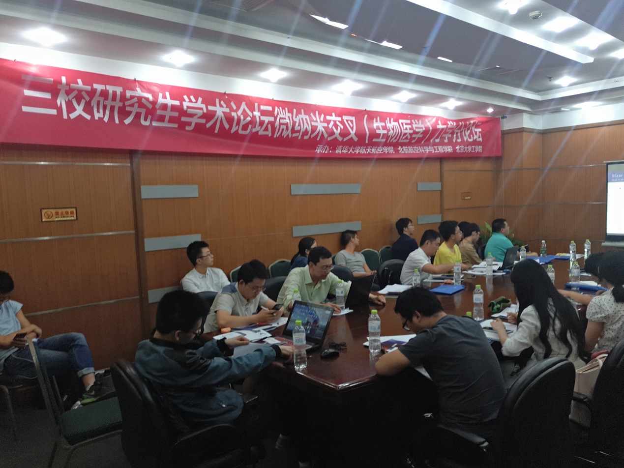 2017年5月13日13:30-17:30,北航-清华-北大三校“歼十杯”博士生学术文化节微纳米交叉(生物医学)力学分论坛在北京顺鑫绿色度假村会议中心一层第5会议室举行。