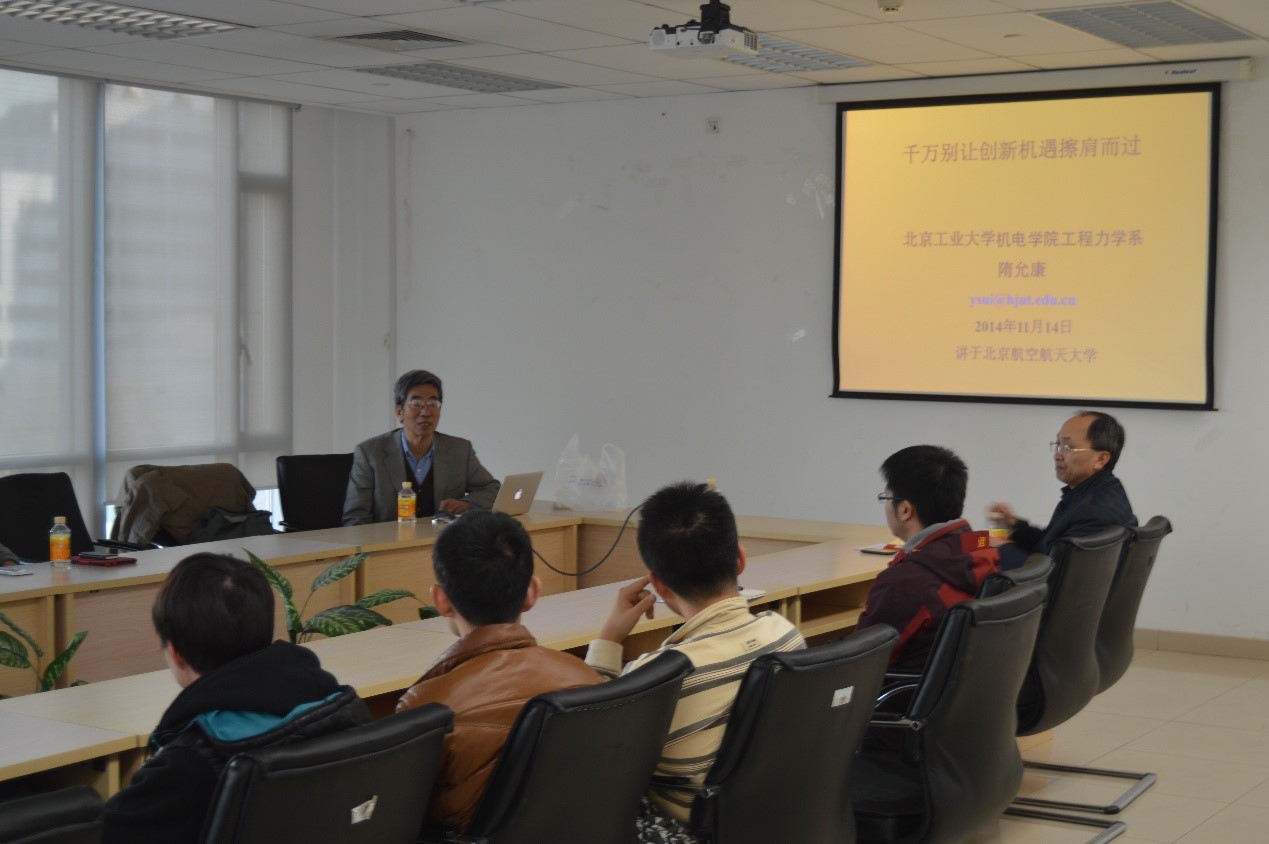 2014年11月21日下午2:30至4:30在yl6809永利C706会议室举办了yl6809永利固体力学前沿讲座本学期第9次报告,北京工业大学的隋允康教授应公司邢誉峰教授的邀请做了题为《千万别让创新机遇擦肩而过》的学术报告。