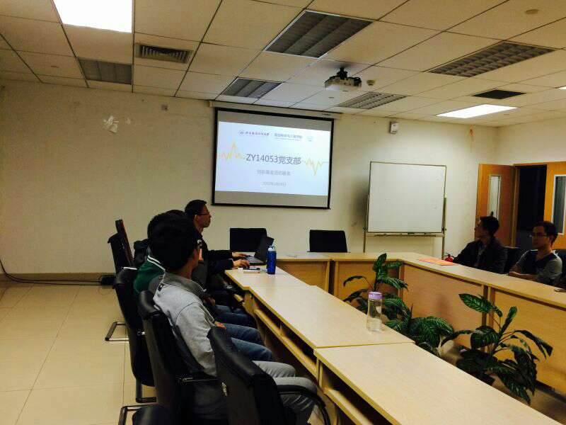 2015年3月30日,ZY14053党支部携手BY14051党支部在新主楼C706会议室召开以“书韵飘香,激扬开讲,乐享青春,爱我北航”为主题的系列活动的总结汇报会议,会议由ZY14053党支部书记主持。
